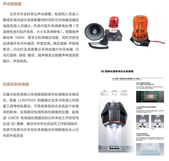 5、位置識(shí)別系統(tǒng):采用定位及位置識(shí)別最新技術(shù),通過(guò)圖像識(shí)別傳感器,識(shí)別鋼卷和吊具的位置,進(jìn)行計(jì)算和分析判斷吊具與鋼卷具備吊掛和起吊條件,進(jìn)行語(yǔ)音提示,系統(tǒng)具有自動(dòng)識(shí)別跟蹤鋼卷與吊具的距離,操作工實(shí)時(shí)掌握清晰的位置及畫(huà)面信息,準(zhǔn)確無(wú)誤的操作,與天車(chē)定位系統(tǒng)拓展能達(dá)到自動(dòng)起吊,最終實(shí)現(xiàn)智能化、無(wú)人化行車(chē)的升級(jí)改造。該系統(tǒng)能極大的減少操作人員的誤操作,給生產(chǎn)及安全提供有力保障,提高生產(chǎn)效率及設(shè)備安全性。